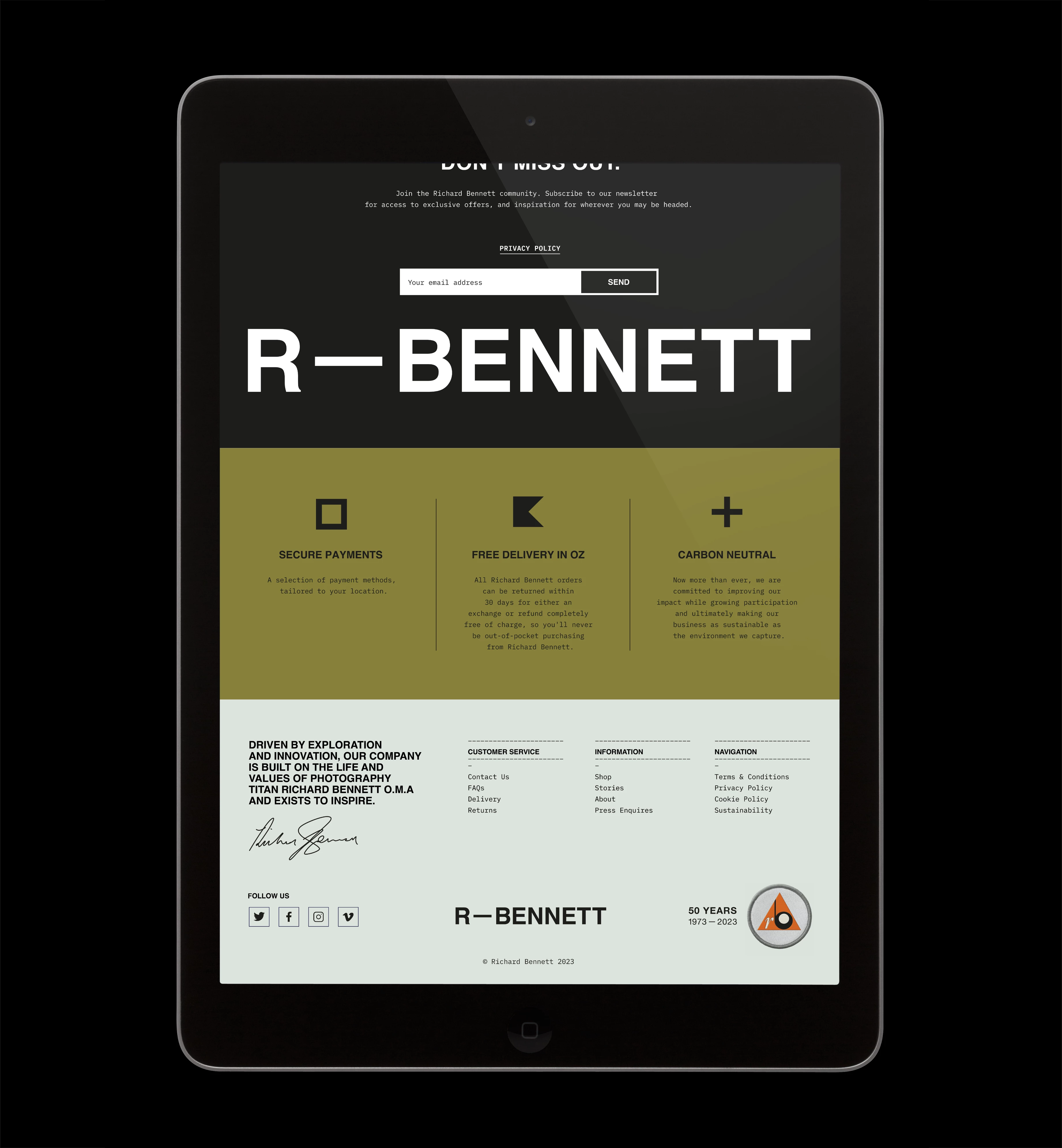 An iconic identity, brand narrative and e-commerce website design for a legendary Australian photographer.